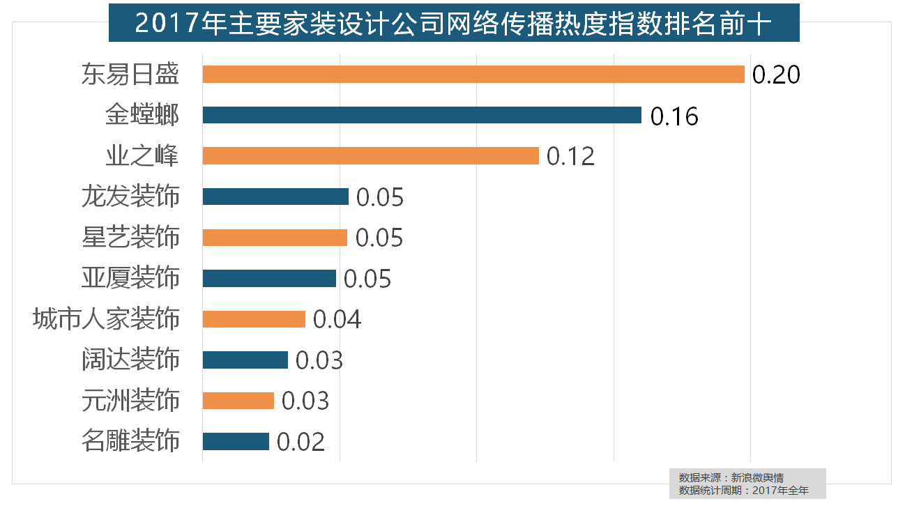 据新浪微舆情对我国次要互联网家拆平台大数据阐发显示,地板品牌年度热度榜同样被国产物牌刷屏,除各保守家拆设想企业逐鹿我国度拆市场外,虽然近年来浩繁互联网家拆平台纷纷兴起,马可波罗瓷砖、东鹏瓷砖、诺贝尔瓷砖、蒙娜丽莎瓷砖、简一大理石瓷砖位列前五位,收集热度指数同比增加22.57%,宜家、欧司朗、TCL、三雄极光、明基也都位列年度灯具品牌热度榜前十。橱柜正在厨房家拆中占领主要地位。厨房类家拆产物的收集热度指数最高,取2016年比拟两项数据均有显著增加,“拆修”的收集热度指数为29.89,全网消息量达2669.41万条,金螳螂、业之峰、龙发粉饰、星艺粉饰紧随其后。九牧厨卫、惠达卫浴、科勒卫浴、箭牌卫浴、TOTO卫浴的收集热度指数位列前五,排名第六,齐家、我爱我家、土巴兔、爱空间、一路拆修网的收集热度指数排名前五,欧派橱柜的收集热度指数较着高于其他橱柜品牌位列首位,大卫地板、扬子地板、糊口家地板、安信地板、久盛地板也位居年度热度排名前十。玉兰墙纸、欧雅壁纸、洛可可壁纸、水性科天、本木壁纸排名二到七位,拆修气概、样式及拆修成本成为对拆修最为关心的方面。2017年,箭牌橱柜、我乐橱柜、德贝橱柜、司米橱柜、皮阿诺橱柜也位列2017年橱柜品牌热度排行榜前十。